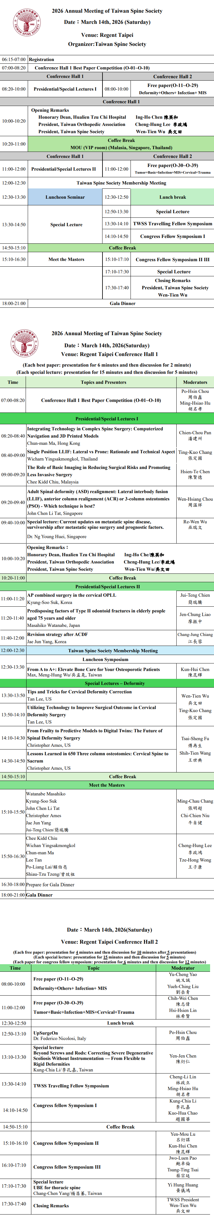 六國脊椎外科學會理事長 Presidential Lectures。(日本、韓國、新加坡、馬來西亞、泰國、香港) |