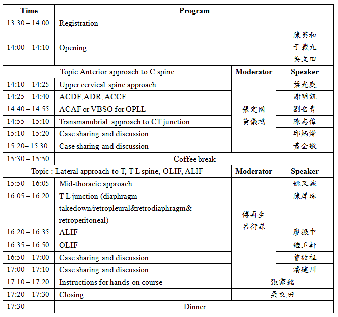 ●2025年『脊椎進階模擬手術研習營』課程講題