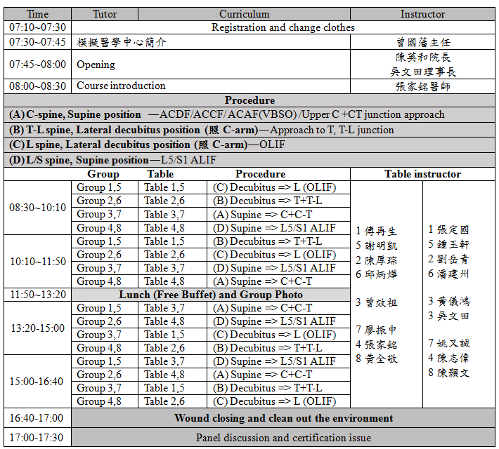 慈濟大學模擬醫學中心、花蓮慈濟醫學中心骨科部、台灣脊椎外科醫學會 |
