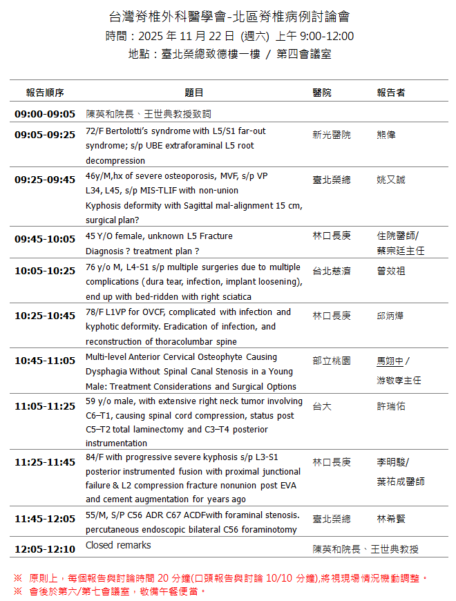 (請於主旨註明:2025北區脊椎病例討論會)。 |